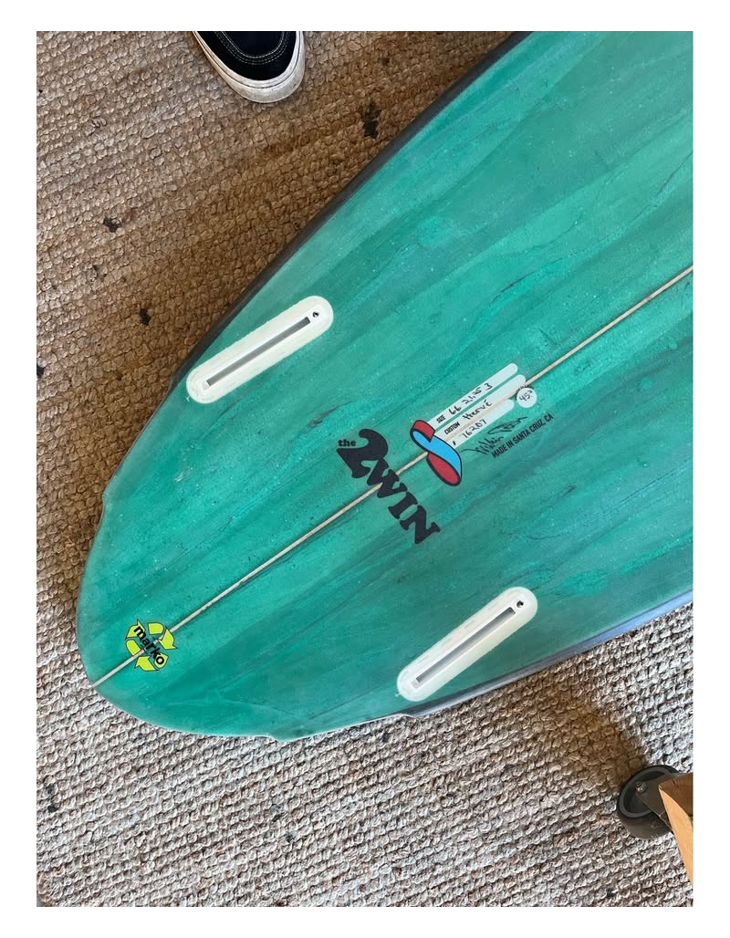 Planche surfée, avec enfoncements d'usage et réparations mineures