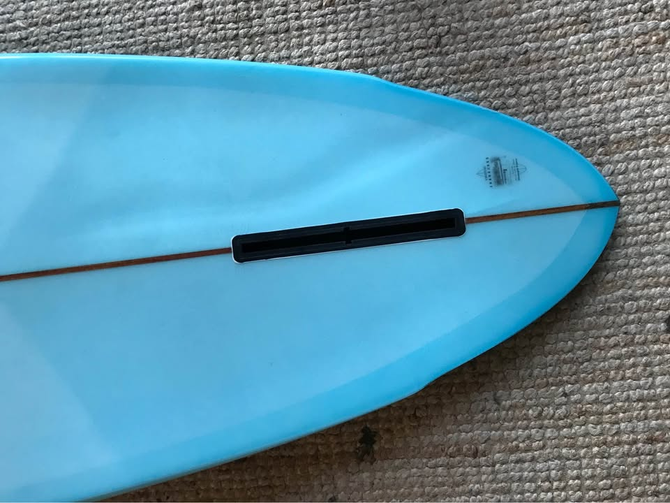 Planche surfée, avec enfoncements d'usage et réparations mineures