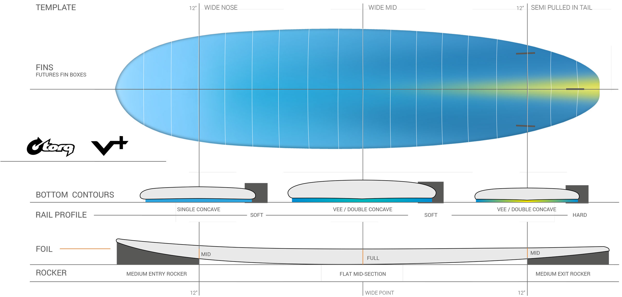 La V+ transpose la tendance des planches larges à fort volume dans le modèle midlength, créant ainsi une planche qui offre la stabilité et la maniabilité d'une planche beaucoup plus longue, mais dans un format compact et plus facile à manœuvrer.