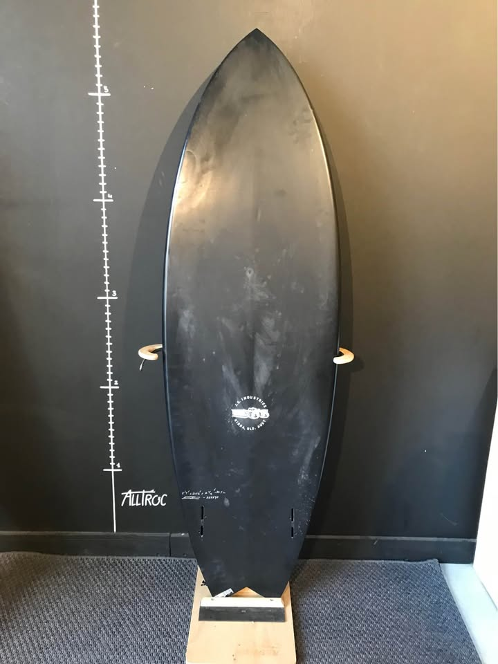 Planche bien surfée, avec enfoncements d'usage et réparations majeures