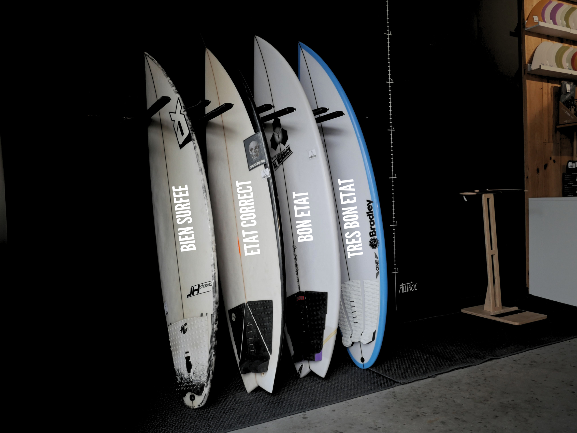 Chez Alltroc, chaque planche est vérifiée et classée avec précision pour que vous sachiez exactement où vous mettez les pieds (et la wax).