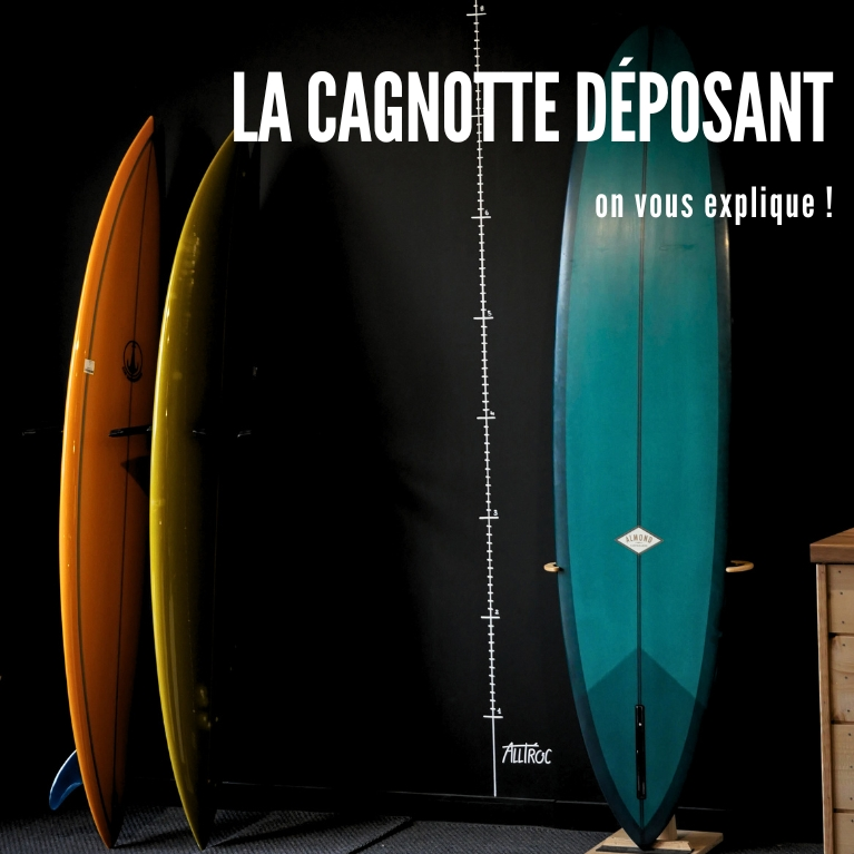 Vous pouvez dépenser votre cagnotte de deux façons : Présentez-vous en caisse, nous déduisons directement le montant de votre achat. Il vous suffit de demander un code promo du montant exact de votre cagnotte. La cagnotte Alltroc est réservée aux clients ayant déposé du matériel en magasin. - pendant l’attente du chèque, - ou pour tout achat en magasin ou sur notre site. Votre planche est vendue 350 €. Avec ces 305 €, vous pouvez acheter : une autre board une combinaison des dérives n’importe quel produit du site ou en magasin !